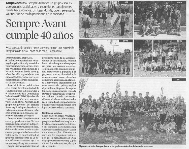 A continuación recordamos la noticia en el periódico "Levante" y la entrevista que le hicieron al Presidente de la Asociación Sergio Cuenca por Radio Nou. Las fotos podemos verlas en la galeria, a través del enlace "Fotos" seleccionando "40 aniversario".